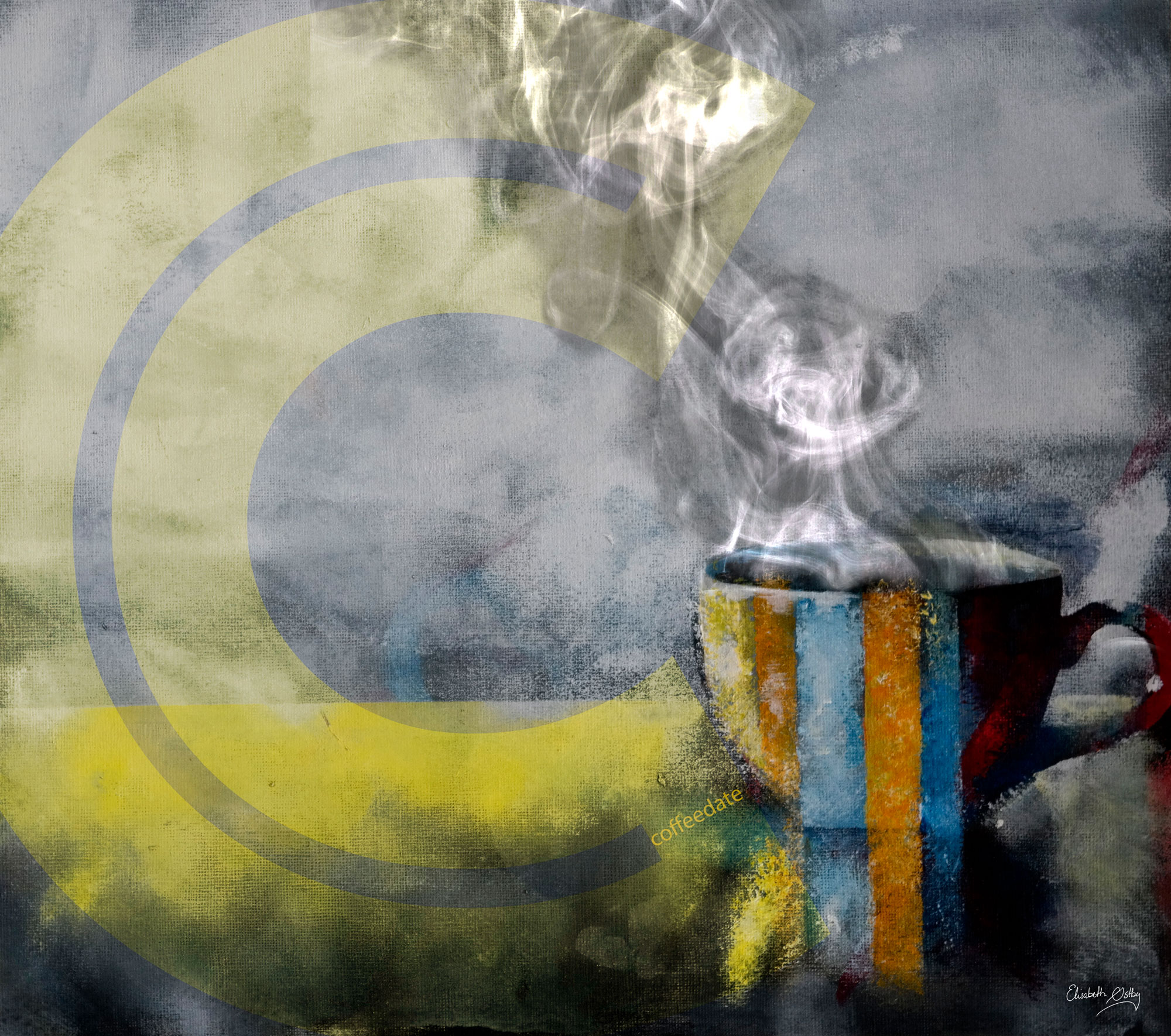 Coffeedate: akryl, foto og typografi skjønn forening.