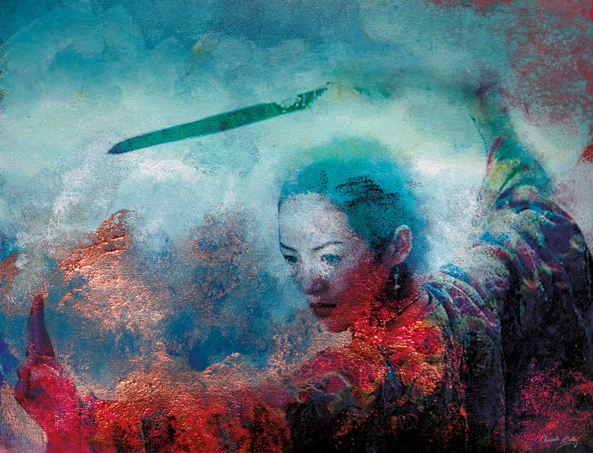 Med komplimentærfarger skape variasjon og spenning. Det jordaktige orange sammen med den blå-turkise himmelen viser til tigeren på jorda og dragen i skyene. Akrylmalingen skaper struktur og skaper spenning og nye nyanser i fotografiet.